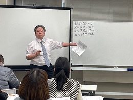 実際に模擬授業をすると、やはりどう「問い返す」かということが難しく、言葉につまってしまう自分に反省しかありませんでした。普段の授業から今日学んだことを実践していきたいと思います。まずは板書の工夫からしていきたいです。